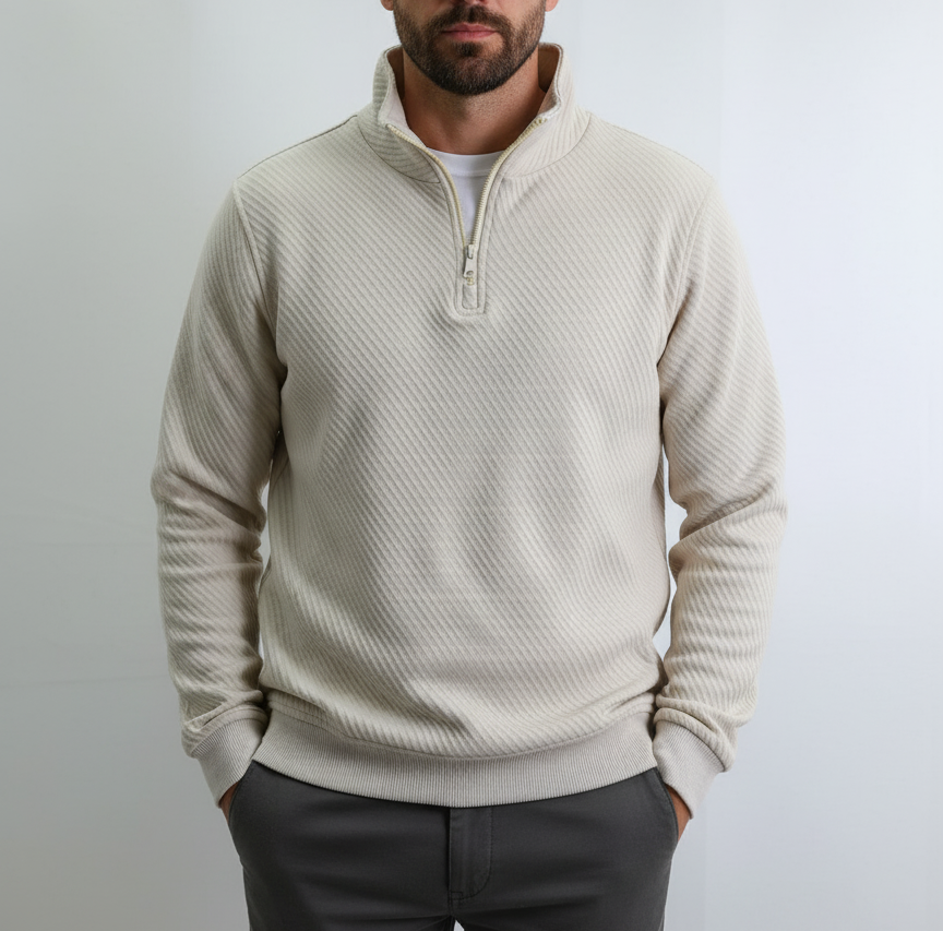 Men's Textured Quarter-Zip Sweatshirt with Collar