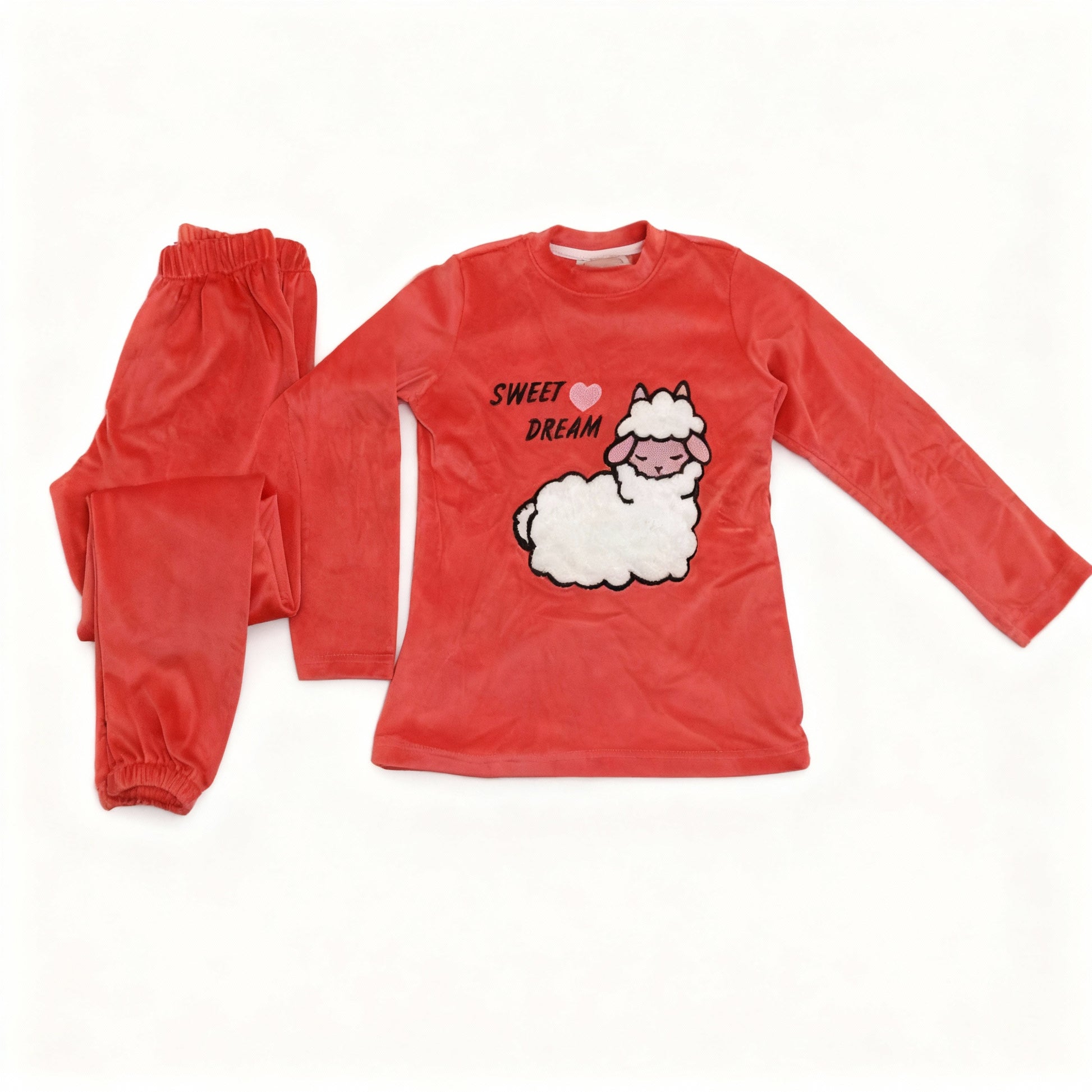 بيجامة قطيفة شتوي بناتي ناعمة بتصميم اللطيف. خامة مريحة ودافئة ومقاسات من 6 إلى 16 سنة
