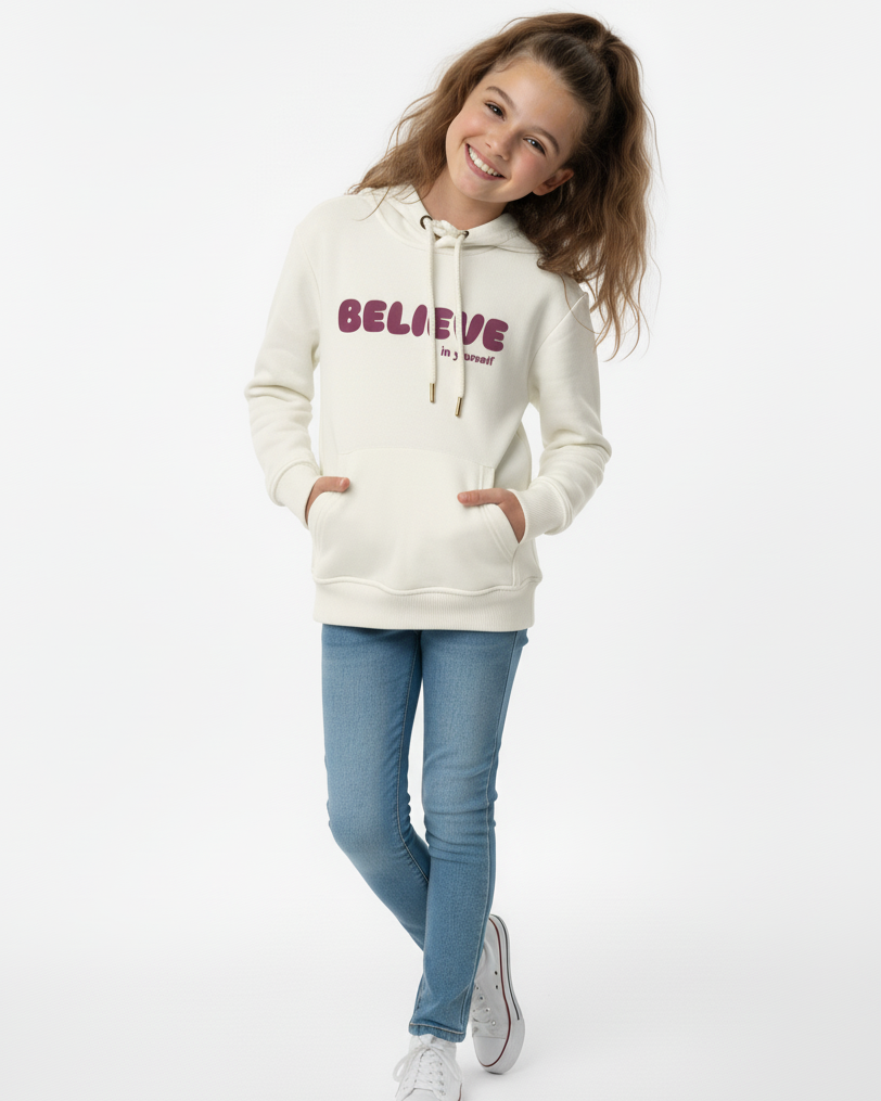 امنحي صغيرتك إطلالة ملهمة ومريحة مع سويت شيرت الهودي البناتي الرائع هذا. يتميز بتصميمه العصري ولونه الكشمير الفاتح الجذاب، مع طبعة "Keep Going" التحفيزية التي تضفي لمسة إيجابية ومميزة على مظهرها. مثالي للارتداء اليومي، للمدرسة، أو للأنشطة الخارجية في الأجواء المعتدلة، حيث يجمع بين الأناقة والراحة المطلقة