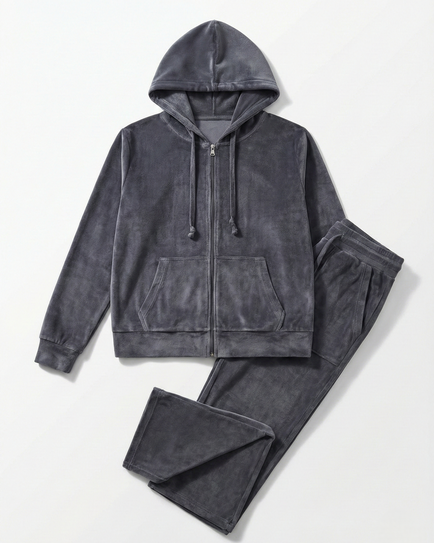 Women's velvet pajama set with zipper-GREY