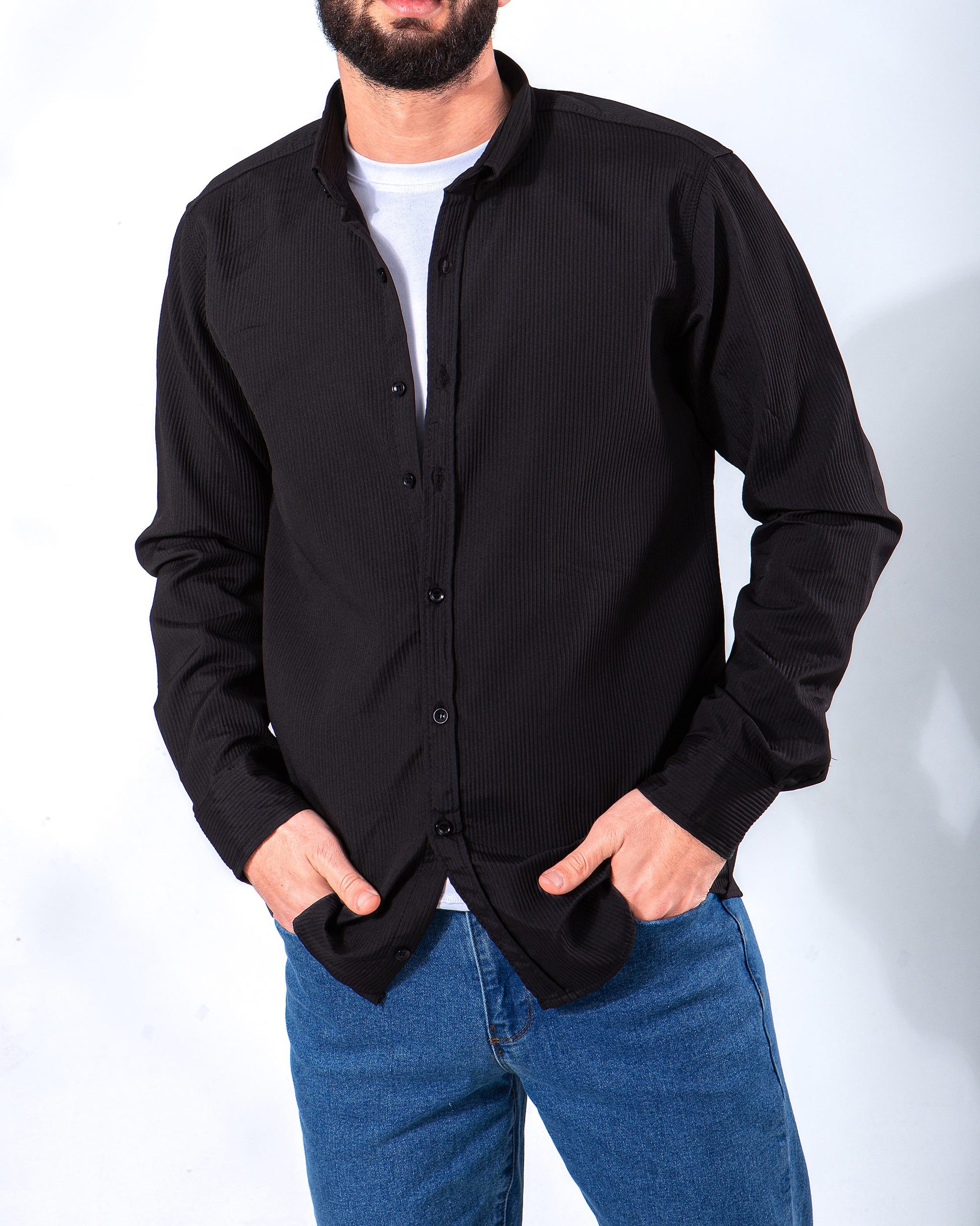 Men's Shirt ribbed with Sleeves - Black