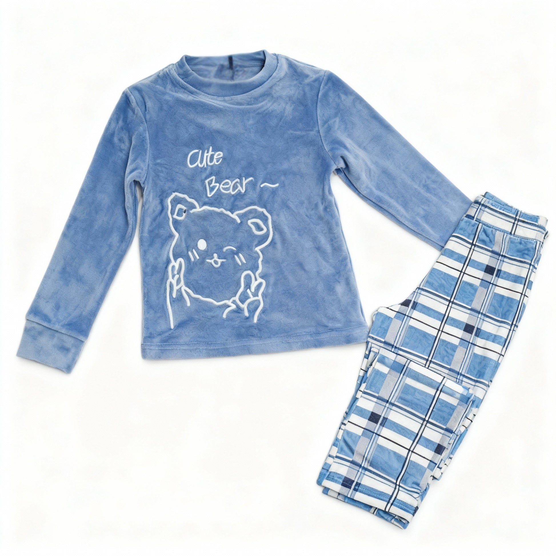 بيجامة بنات قطيفة دافئة بطبعة الدب اللطيف (Cute Bear)