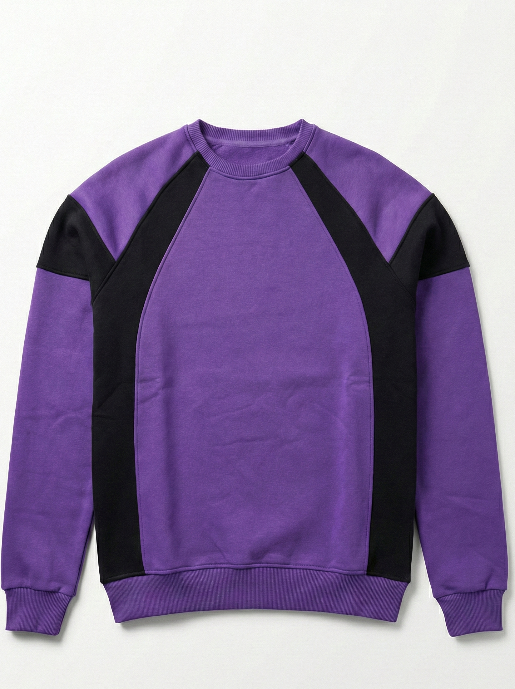 Men's crew neck sweatshirt-Cotton Blend-Print-Purple